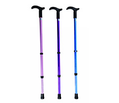 Cabo em nylon, alumínio anodizado, ponteira aderente, resistente e flexível de poliuretano. Auxílio na deambulação e equilíbrio...