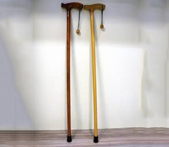 Madeira envernizada com cabo tradicional, curva ou Europa, ponteira aderente de borracha. Auxílio na deambulação e equilíbrio...