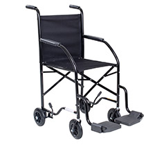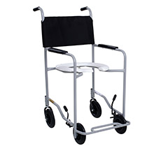 Em aço carbono, assento/encosto em nylon, dobrável, freios bilaterais, apoio para braços fixos, apoio para os pés fixos, rodas...